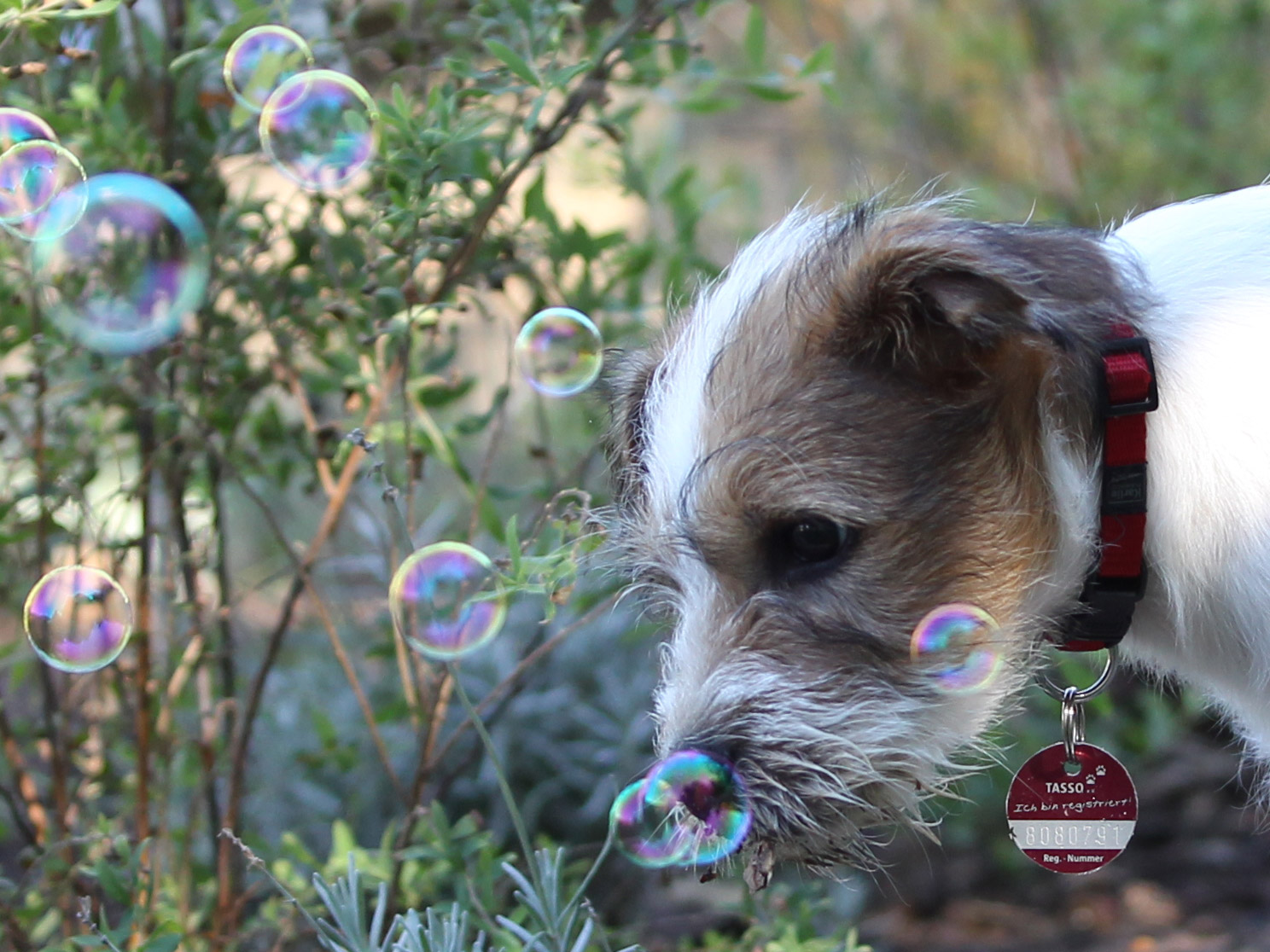 Wenn man zufällig eine Seifenblasenmaschine bei der Hand hat, entstehen mit etwas Glück nette Fotos. So wie die folgenden Bilder von Cendo im Garten. [Zeige eine Slideshow]